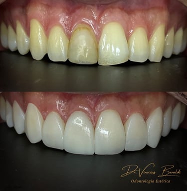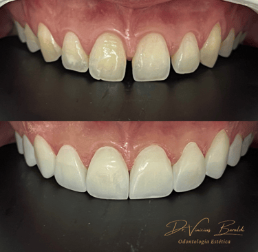 Na minha técnica exclusiva, conseguimos produzir lentes em resina naturais e resistentes através de uma fina camada, além da aplicação de uma blindagem nas lentes, possibilitando assim, preservar a estrutura dental, manter um sorriso harmônico e protegido da pigmentação.