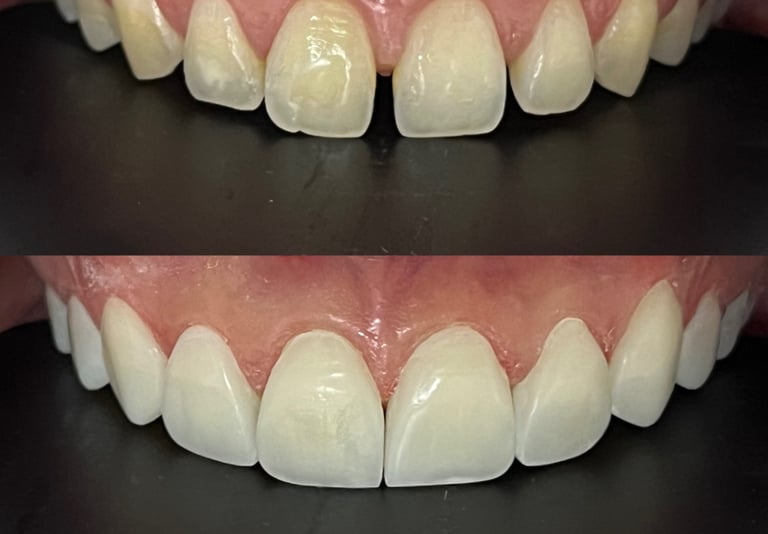 Além do polimento, aplicamos uma blindagem especial, envolvendo cada lente com uma película protetora que as torna resistentes e brilhantes. Essa inovação não apenas preserva a intensidade da coloração das suas lentes, mas também as impermeabiliza, permitindo que você mantenha sua rotina alimentar sem preocupações. Com nossa técnica única, você não apenas transforma seu sorriso, mas também investe na sua confiança e bem-estar dental.